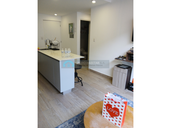 1 baño, cocina abierta con una isla para servir de comedor y sala, cuenta con una terraza bonita donde puede poner una churrasquera de las grandes, y una linda mesa para exteriores con sus sillas, cuenta con su área de lavandería dentro de closet, es Pet friendly.